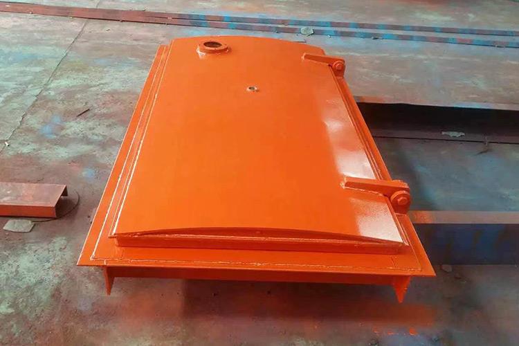 避難硐室密閉門使用對稱的方式進(jìn)行安裝,它的每一個(gè)安裝件都是使用鋼材料來焊接成的。避難硐室密閉門的門扇是由井字結(jié)構(gòu)來進(jìn)行焊接的,反風(fēng)的主要裝置是采用鋼管來插拴的,安裝的時(shí)候在合頁處涂上潤滑油,保證使用的靈活性。斜風(fēng)井防爆門關(guān)門時(shí),各部件反向擺動(dòng),到關(guān)閉狀態(tài)時(shí)成矩形狀態(tài)。